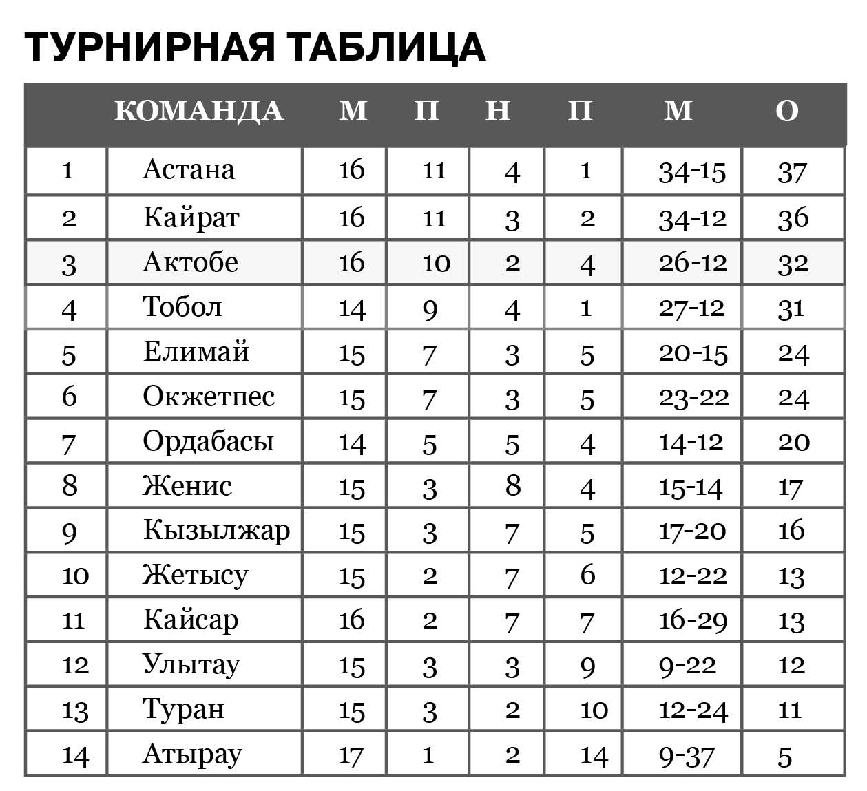 После этой победы «Актобе» сохранил за собой третью строчку в турнирной таблице чемпионата, набрав 32 очка. При этом все наши конкуренты также выиграли свои матчи в 15-м туре: «Кайрат» в Алматы уверенно разобрался с «Тураном» на своем поле, забив четыре безответных мяча, «Астана» увезла победу из Талдыкоргана, обыграв «Жетысу» со счетом 2:0, а костанайский «Тобол» в упорном матче взял в Семее верх над «Елимаем» - 3:2. Кстати, благодаря победе костанайцев, лидирующая четвёрка обозначила солидный отрыв от остальных команд, которым будет теперь очень сложно вмешаться в их спор за медали.