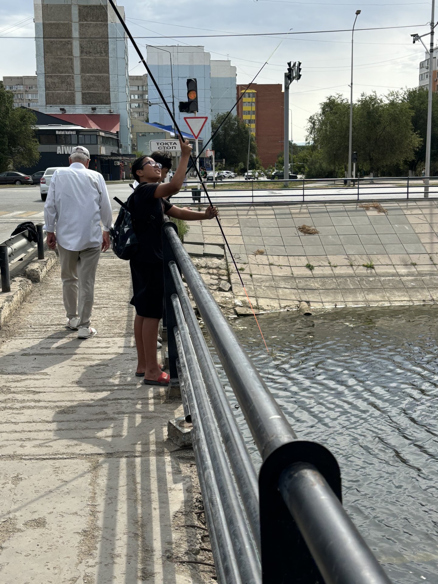Даже в такой воде юные актюбинцы стараются поймать рыбку.