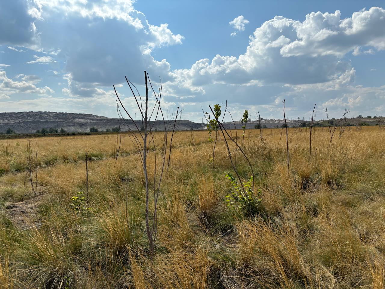 Погибшие саженцы. Позади - шлакоотвалы АЗФ.