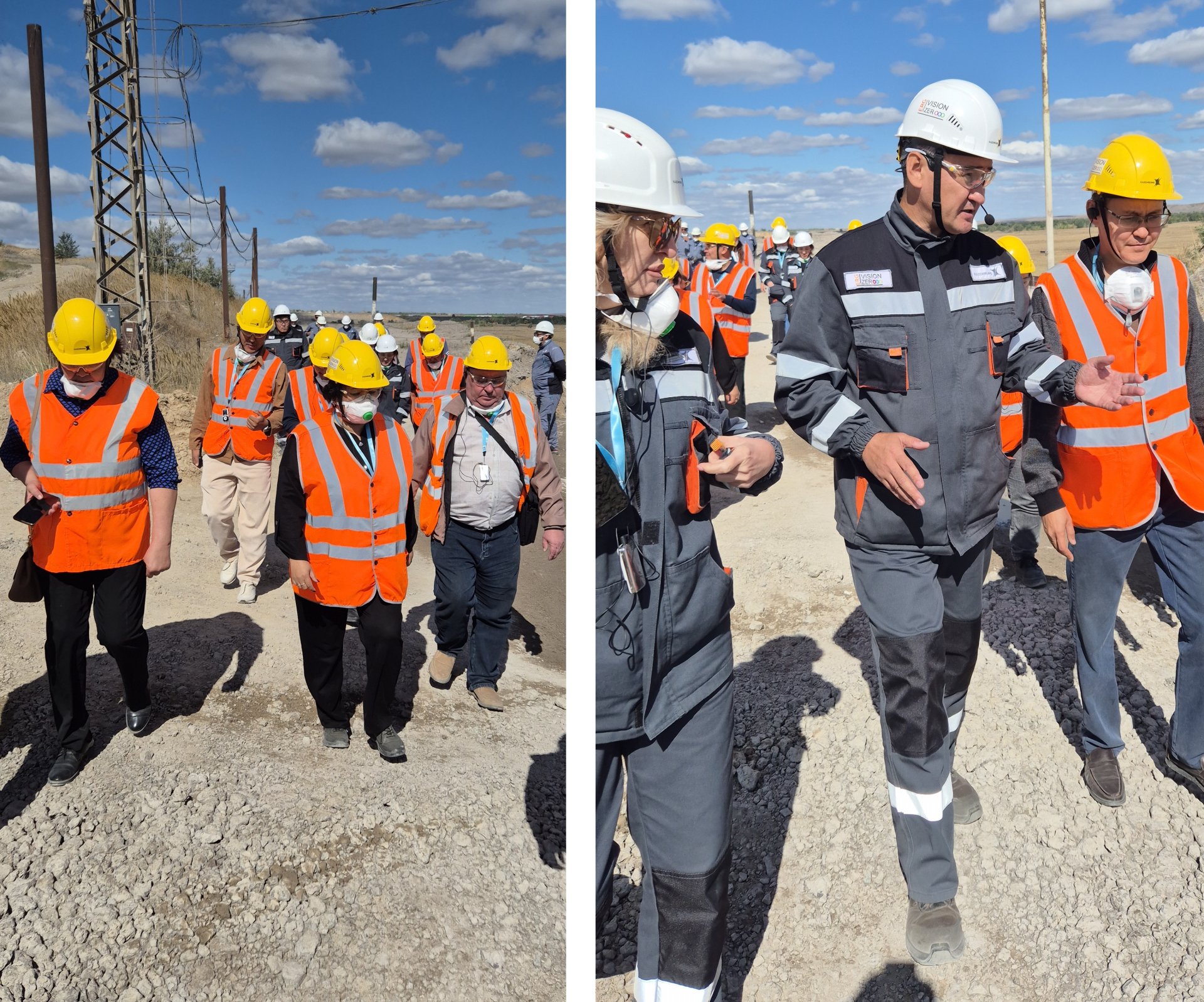 Во время пресс-тура журналистам не дали приблизиться к шлакоотвалам АЗФ. На втором фото - в центре директор АЗФ Ержан Абдулабеков.