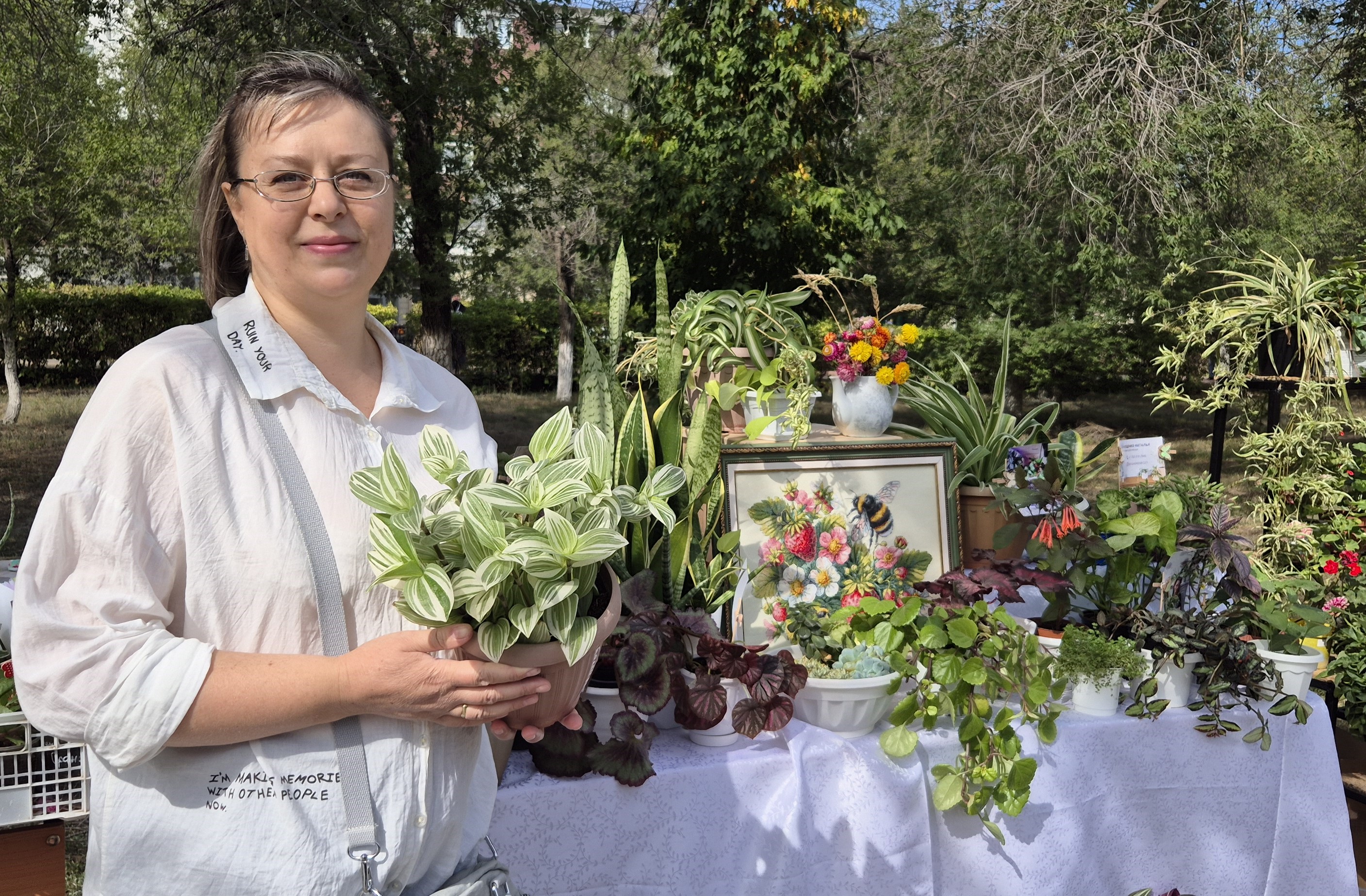- Растениями занимаюсь давно. Коллекцию имею большую. Только видов растений – 500 точно есть. А если сорта и дубликаты считать, то гораздо больше. Часть коллекции на зиму я отношу в детский сад, потому что дома они не помещаются. Не могу сказать, что растения - это мой бизнес. Нет, это хобби. А еще я занимаюсь вышивкой. Вот и здесь, на фестивале, одну работу выставила – с пчелками. Самое редкое растение в моей коллекции – стробилантес. У него шикарные фиолетовые листочки. Он очень любит солнце, но и очень капризный. В этом году набирает популярность пеллиония. Очень она мне нравится!