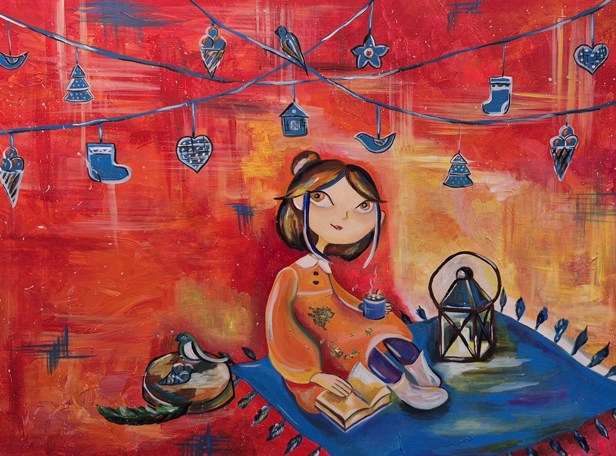 - Я до сих пор люблю смотреть мультфильмы. Картина «Мечта девочки» ими вдохновлена. Девочка сидит на ковре: быть может, это ковер-самолет, а возможно, она просто на пикнике отдыхает.