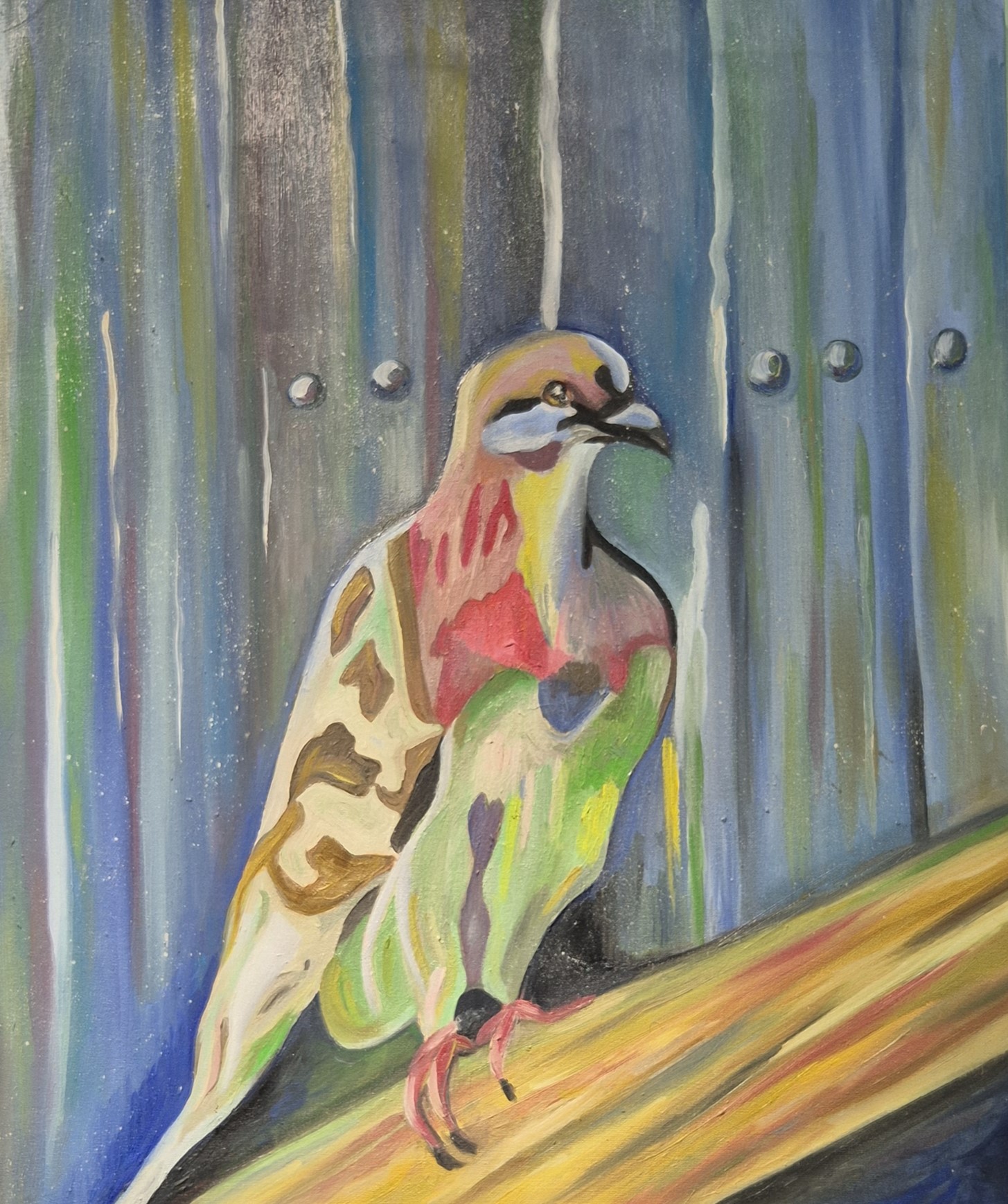 Интересные аллюзии вызывает картина «Птица счастья», на которой изображен голубь. Оперение его отлито из матового стекла, отражающего краски невидимого пейзажа.