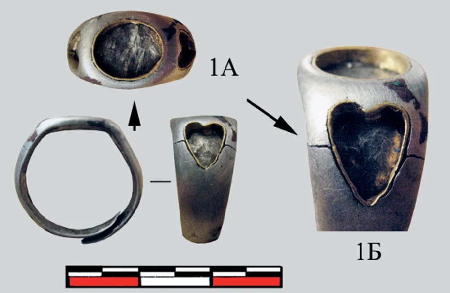 Перстень со вставками, вероятно, был изготовлен византийскими мастерами, работавшими в Аспаботе. «Перстень сделан из толстой серебряной пластины и великолепно отшлифован. Шинка расширяется к щитку и украшена слева и справа от него двумя небольшими сердцевидной формы углублениями, оконтуренными тонкими золотыми полосками».