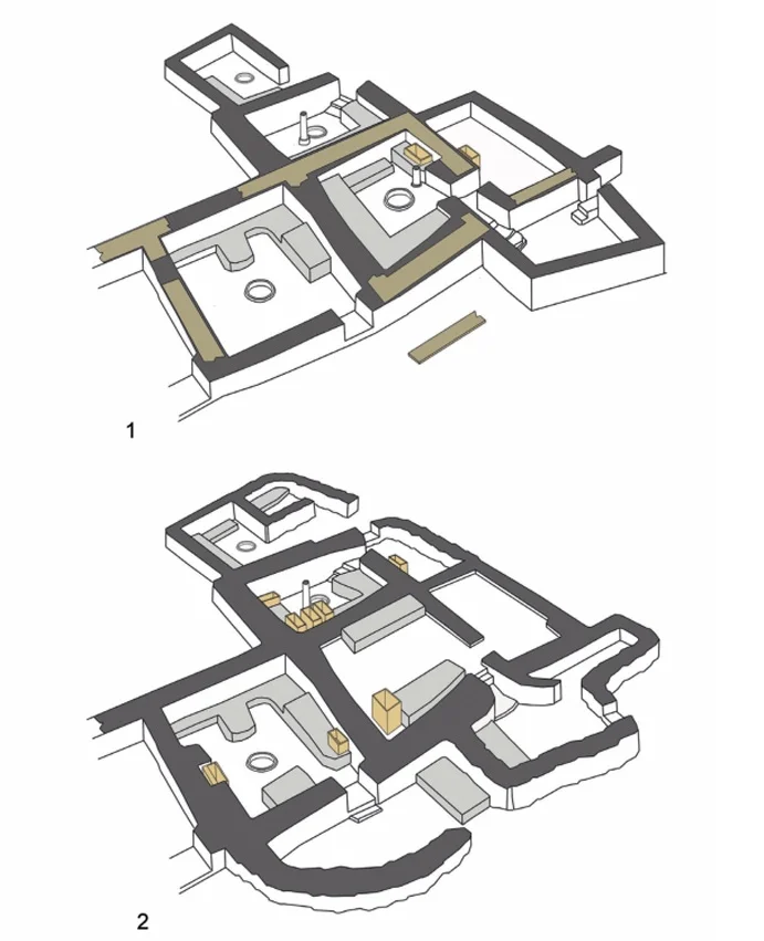 Реконструкция жилых строений, раскопанных на Каракабаке.