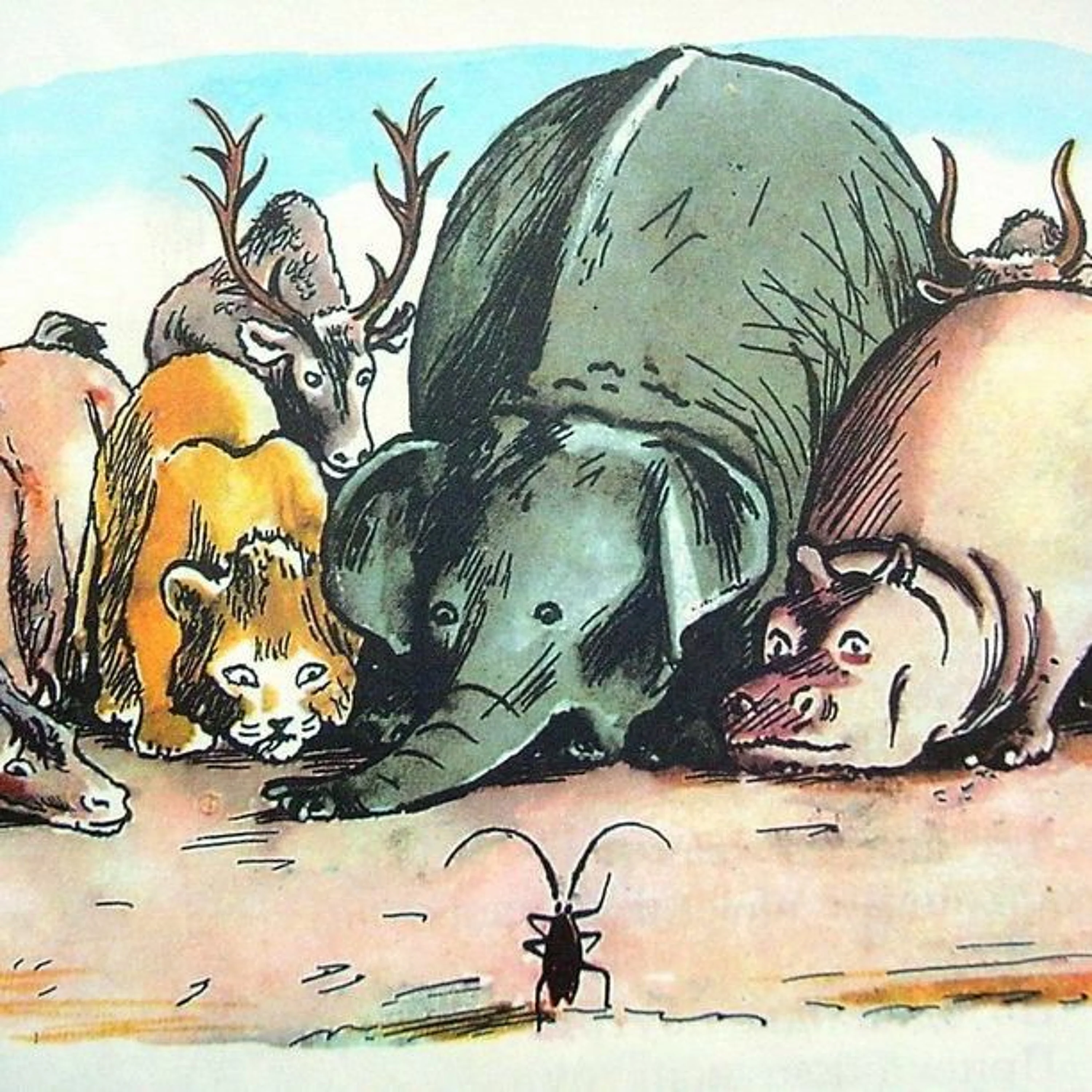 Иллюстрация к сказке К.И. Чуковского «Тараканище». Поговаривали, что Корней Иванович опасался гнева Иосифа Виссарионовича из-за написания этой сказки. Хоть текст и был опубликован до того, как «усатый» узурпировал власть в Стране Советов.