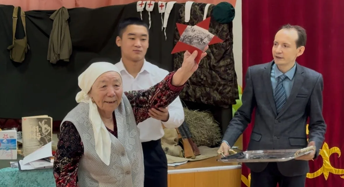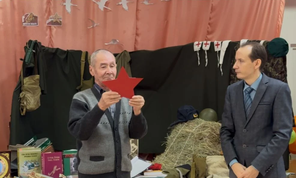 Вскоре приглашаю директора школы. Для неё - особый сюрприз. Кансулу Жубанова с интересом выбирает звезду. На оборотной стороне реквизита - значок партизана. Задаю вопрос: «Кто из учителей школы был партизаном в годы Великой Отечественной войны?». «Это - женщина», - даю подсказку. Тишина. Кто-то из стариков выкрикнул фамилию: «Ерохина!». «Правильно», - подтверждаю я.