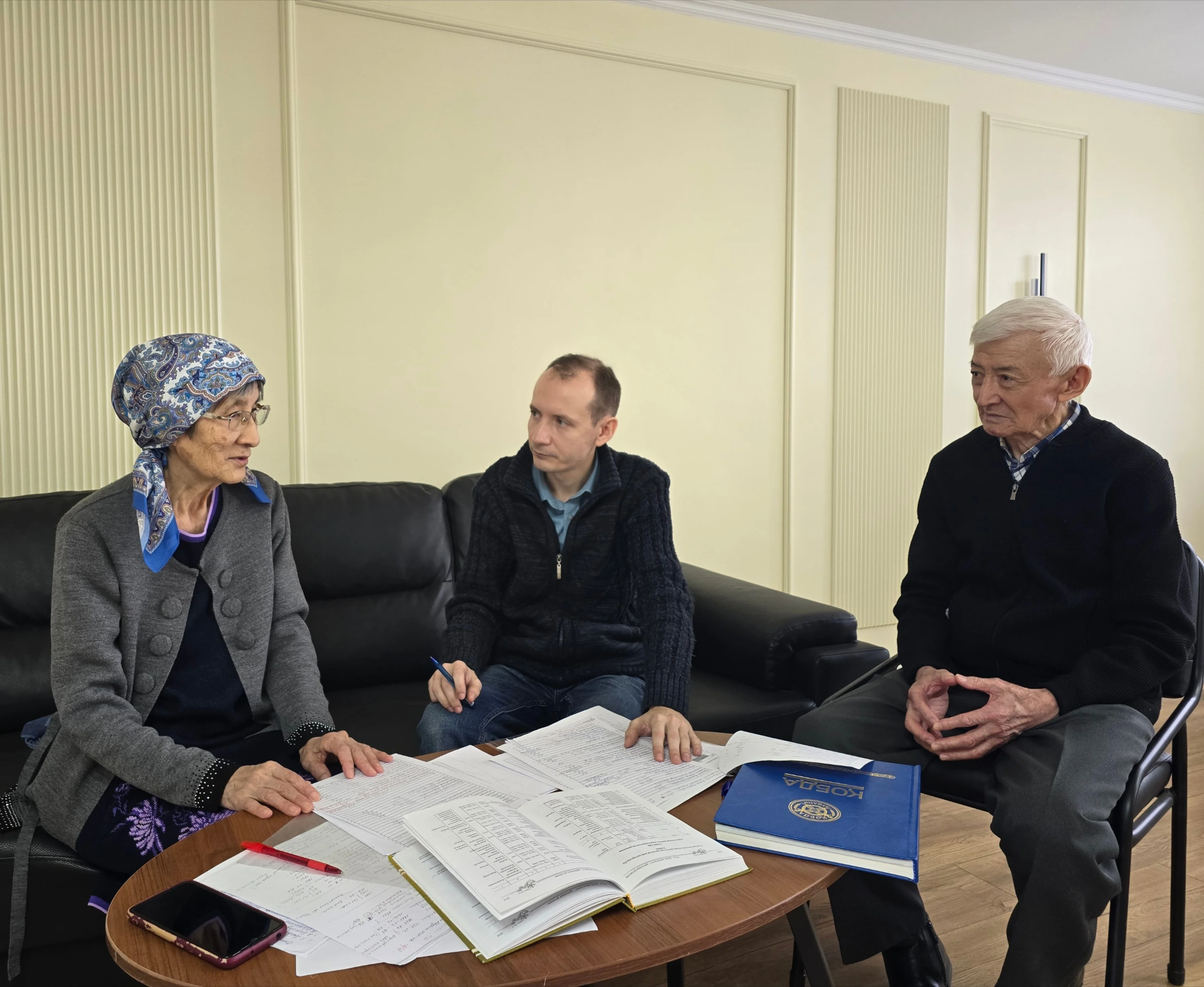 В процессе работы над Книгой Памяти о земляках с Агилой Акшокбаровой и Жумажаном Гильмановым.