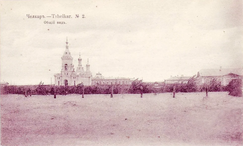 Актюбинская и Челкарская церкви были построены по типовому проекту. Оба снимка, как рассказывает Никита Салов, были сделаны знаменитой полиграфической фирмой «Шерер, Набгольц и Ко». Компания эта выпускала открытые письма (открытки) с видами городов Российской Империи с 1896 года и вплоть до 1918-го.