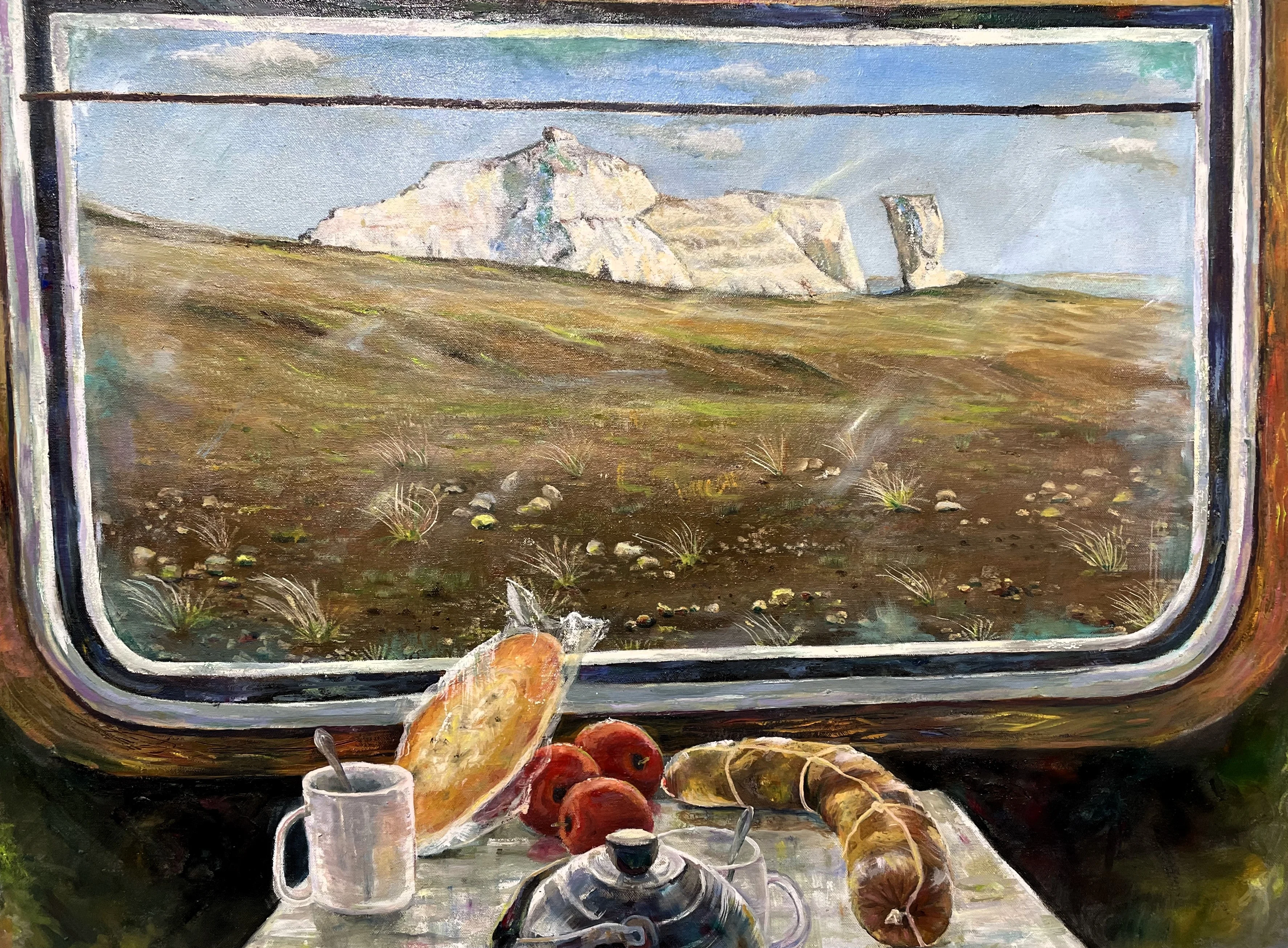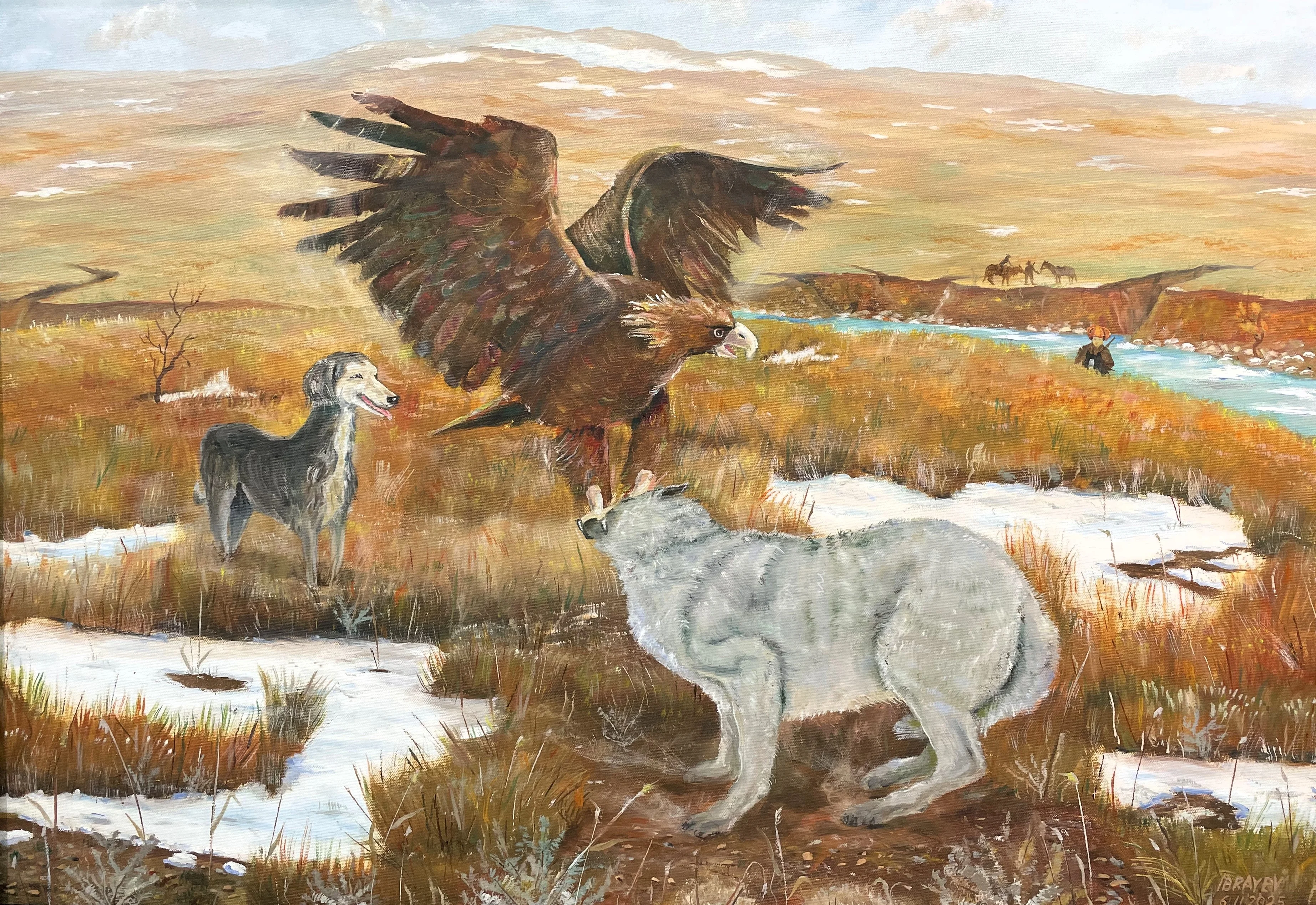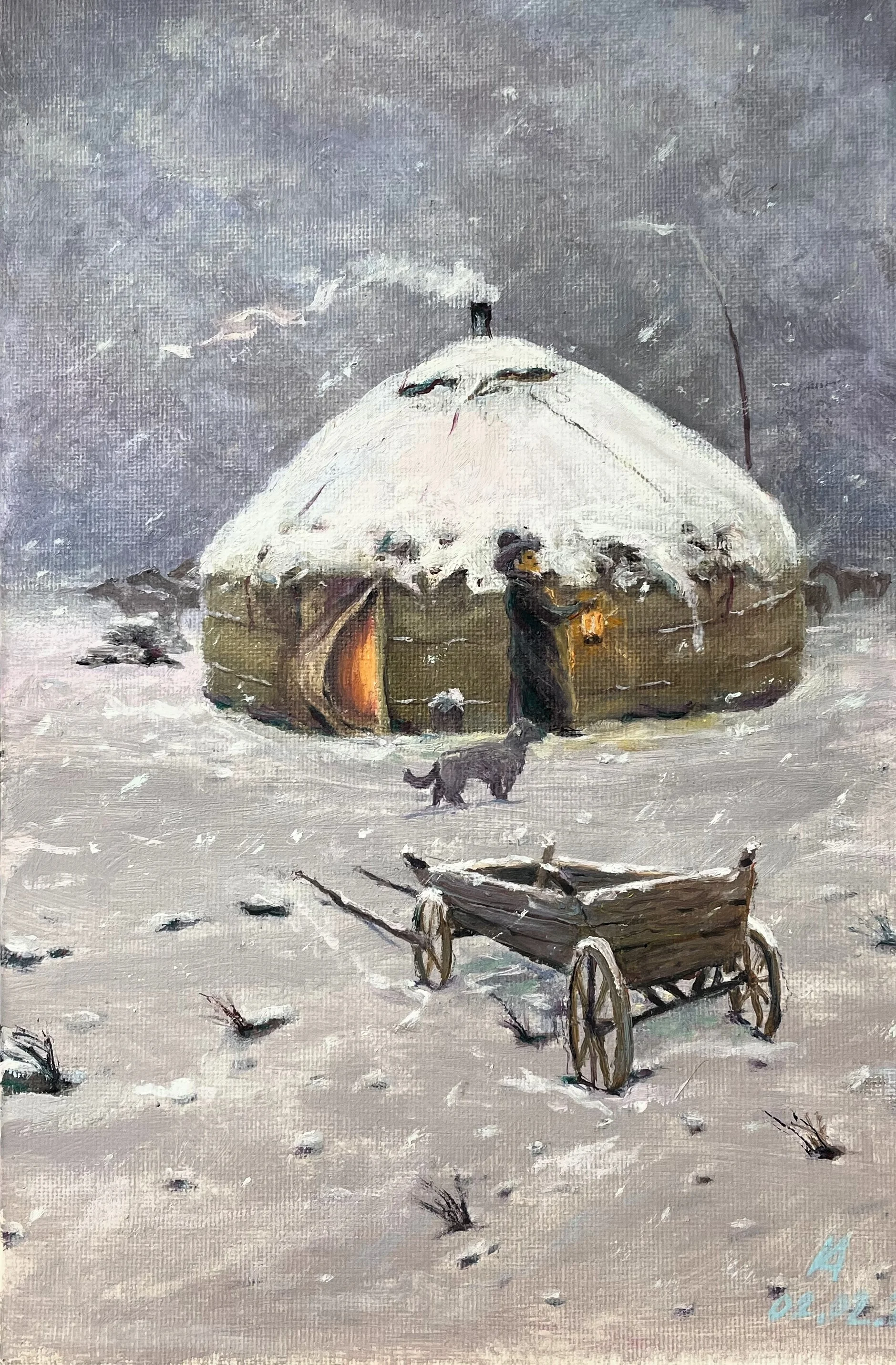Портреты известных соотечественников - Алии Молдагуловой, Хиуаз Доспановой, Димаша Кудайбергенова - соседствуют с изображениями сельского быта, родных степей и посёлков, сценами охоты и образами животных. При жанровом разнообразии экспозиция воспринимается цельно: работы объединяют насыщенная цветовая палитра, внимание к деталям и выверенная работа со штрихом.