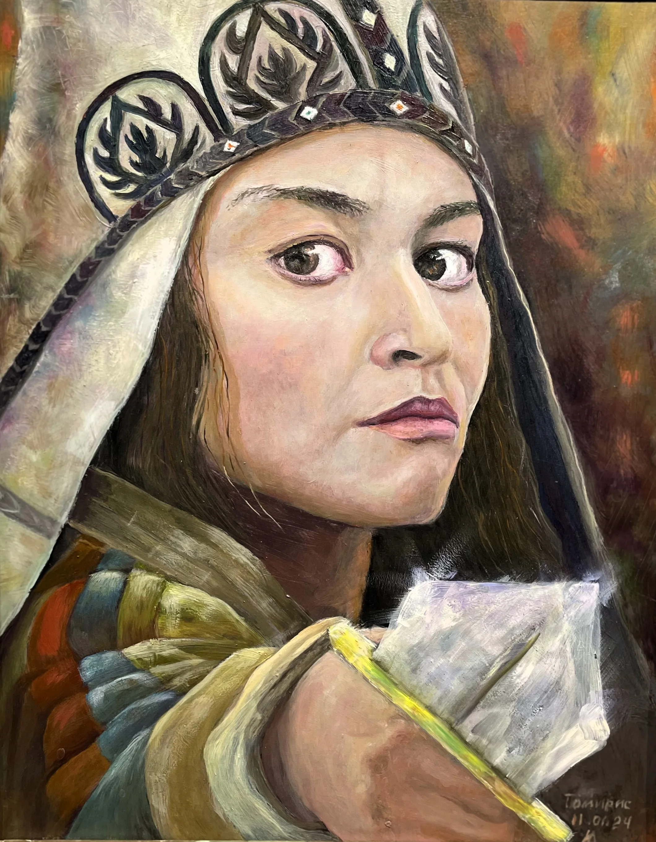 - Мы приурочили эту экспозицию к 30-летию университета имени Баишева. Для меня она стала своего рода итогом творческого пути. Здесь есть портреты известных деятелей Казахстана, чтобы молодёжь лучше их знала, а также пейзажи, сюжеты, связанные с народными легендами. Мне хотелось показать не только образы, но и характеры, культурные аспекты, элементы национальных костюмов. Рисование, конечно, работа непростая и требующая концентрации, но поиск нужного цвета и формы даёт настоящее отдохновение для души. И особенно радует, что среди школьников и студентов я вижу много талантливых ребят.