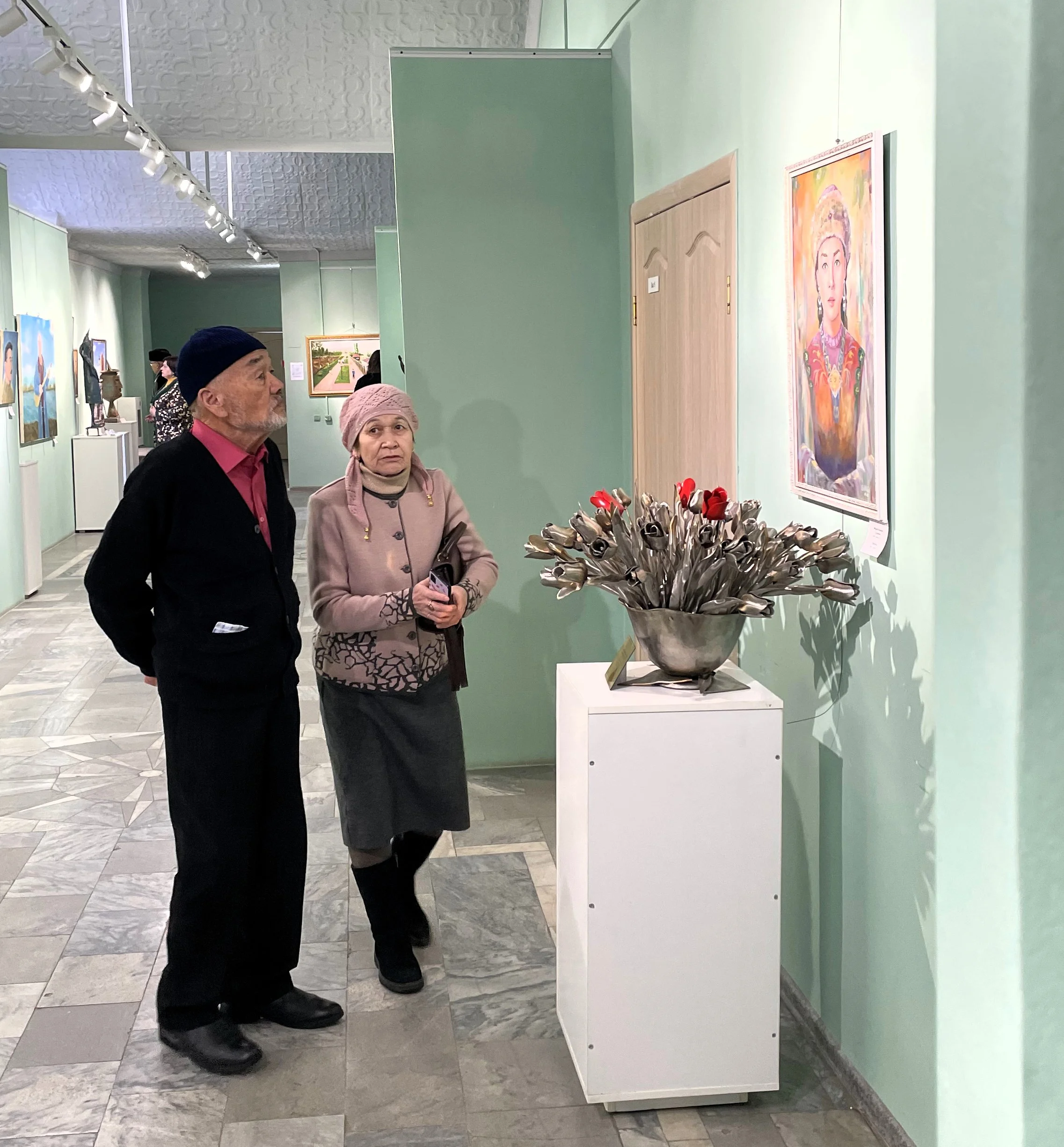 - Для нас большая радость, что эта выставка проходит именно здесь. Мастерство художника, на мой взгляд, заключается в умении найти свой язык и говорить на нём ясно и честно. Особенно приятно видеть в зале учеников и студентов художественных школ. Обращайте внимание на то, как ярко и самобытно Алимжан передаёт наш быт и нашу жизнь. Очень важно, чтобы сохранялась преемственность поколений.