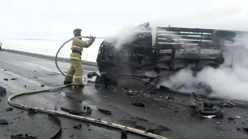 В результате столкновения микроавтобус загорелся. Во втором автомобиле водитель оказался заблокированным в салоне. На место прибыли подразделения ДЧС и бригады скорой помощи