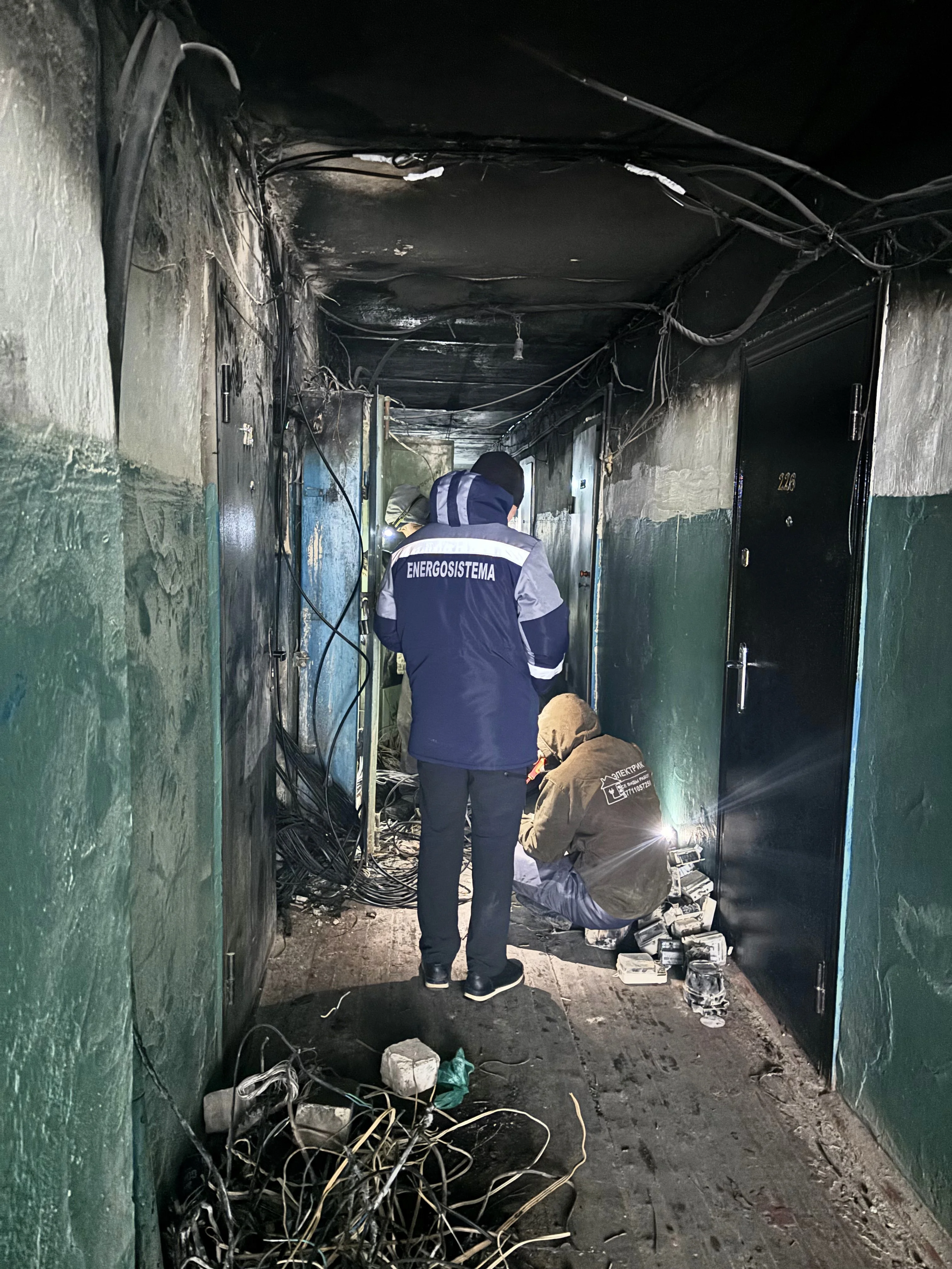Ляззат Шынарбаева, проживающая здесь уже 36 лет и являющаяся старшей по дому, рассказала, что акимат предоставил материалы для восстановления электроснабжения. Электриков наняли за 250 тысяч тенге сами жильцы, собравшие сумму буквально за день. Она также поблагодарила фонд «Добро» за помощь.