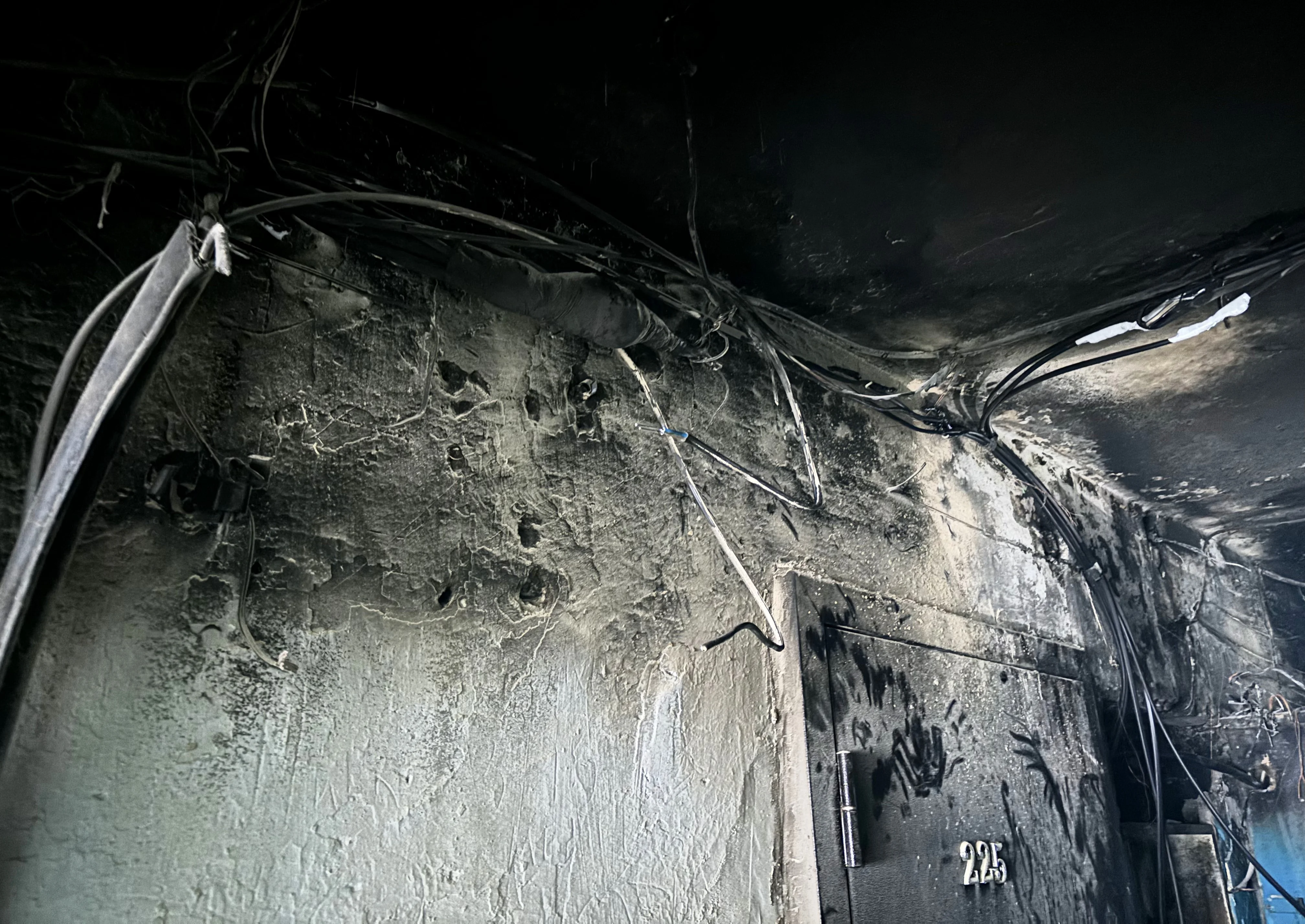 Обгоревшие стены возле электрощитовой стали привычными.