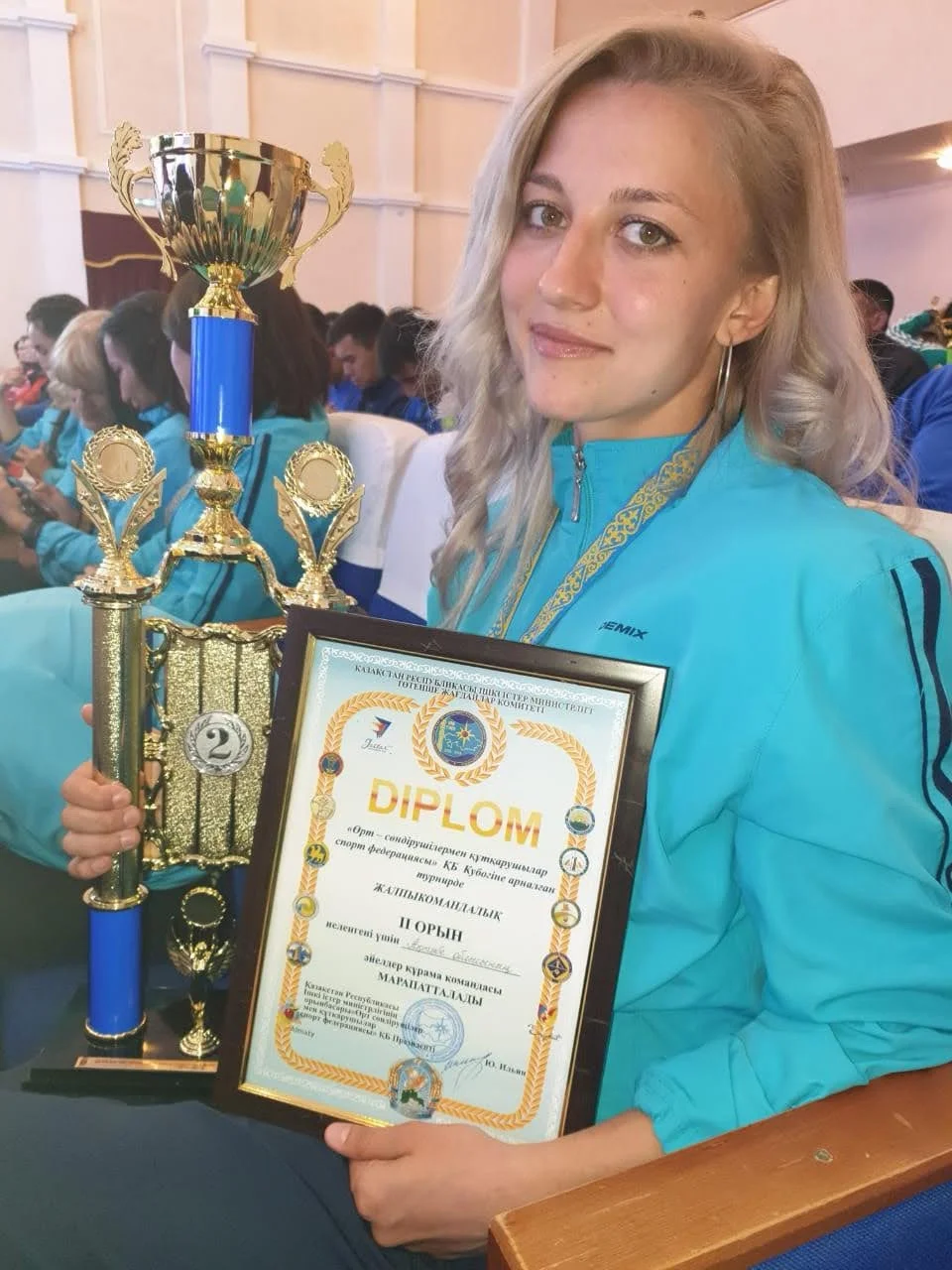 Когда мой тренер ушёл на пенсию, я перешла в пожарно-спасательный спорт. Меня пригласили поучаствовать и представить нашу область. Мы с девочками хорошо себя проявили, заняли на республике третье место в эстафете. Но я никогда не думала стать пожарной. Больше хотела служить в спецназе, в КНБ, но меня не взяли, потому что набора не было. Думала даже об армии...