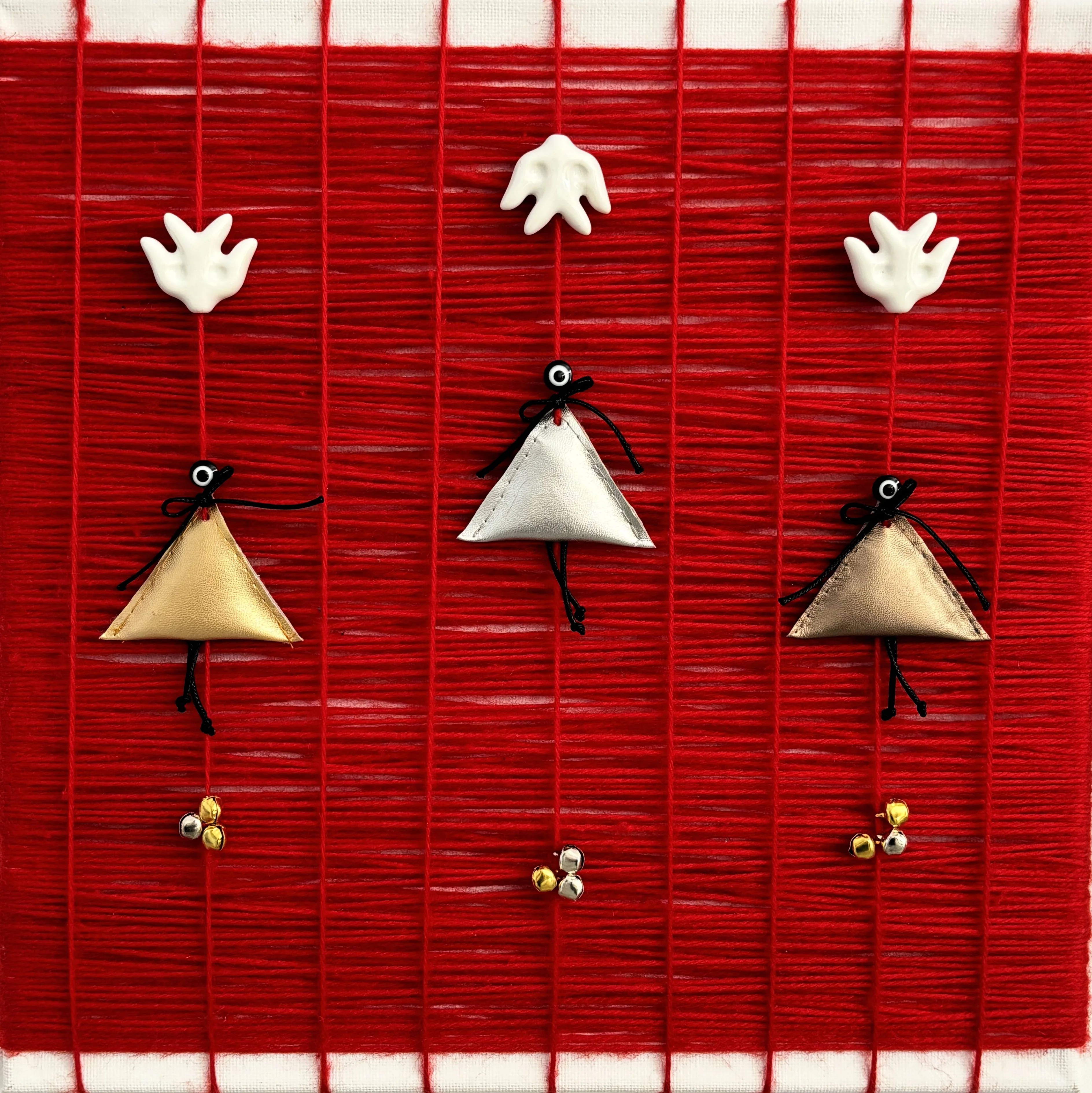 - Первая - зеркало с тумарами-оберегами «Көз тимесін» («Пусть не сглазят»). Хотелось создать что-то интерактивное, чтобы посетители могли не только смотреть, но и взаимодействовать, сделать фото на память. Вторая работа - красное панно из пряжи «Чильтаны». Меня вдохновила легенда о духах, которые оберегают детей в первые сорок дней жизни. Здесь есть все символы защиты: тумары, красные нити, колокольчики. Я внимательно вчитывалась и изучала тему. На создание панно ушёл целый день, - рассказала художница.