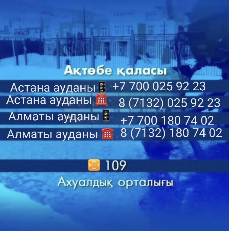 Подать заявку на вывоз снега и оказание прочей помощи можно по номеру единой служба 109, а также по телефонам районных акиматов.