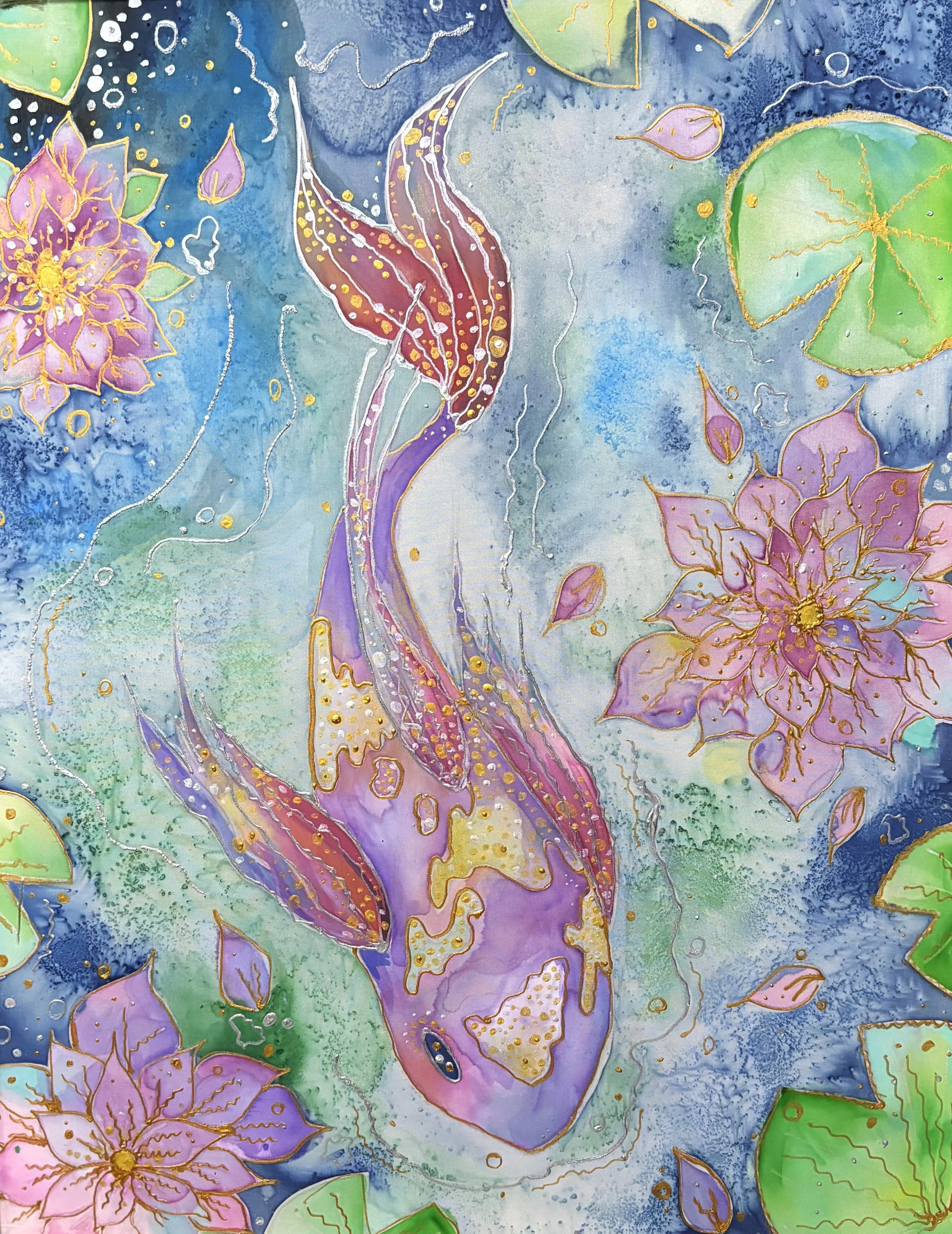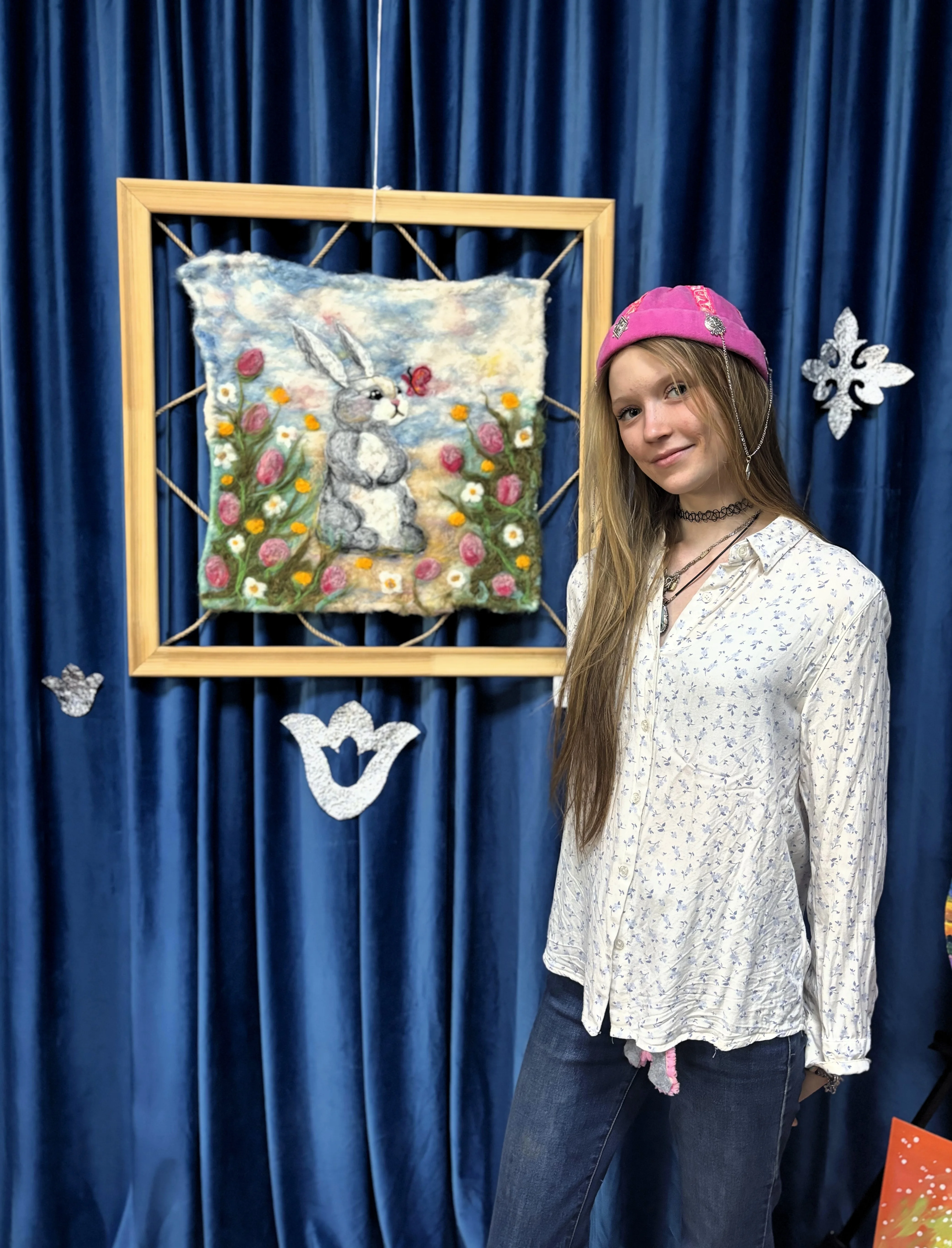 Александра Сычина, юная художница и ученица ГХЛ, использовала выставку, чтобы показать не только живопись, но представить и необычную технику.