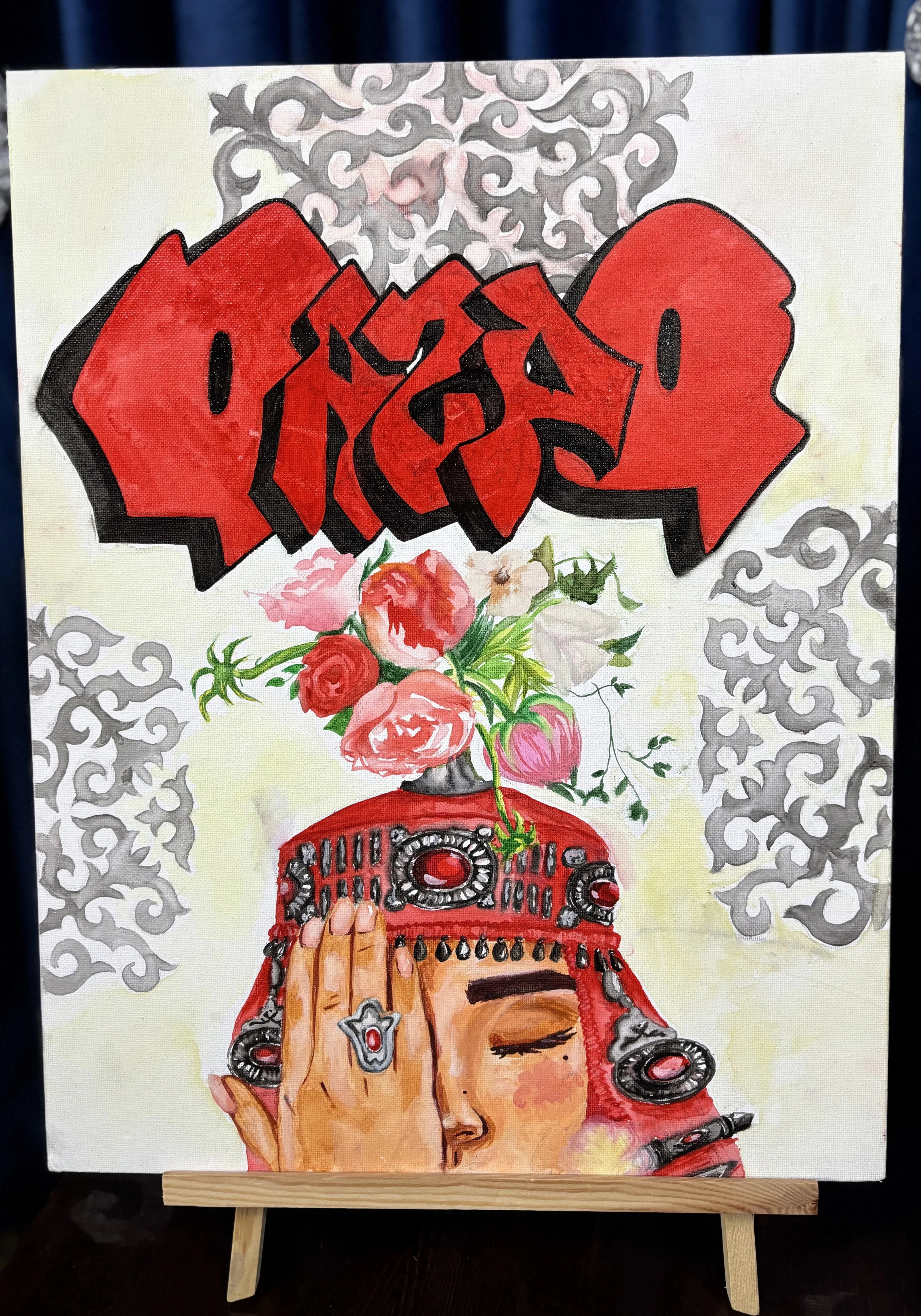 - Моя работа как раз об этом. В детстве я видела, как взрослые пьют горячий чай, и никак не могла понять: как можно пить такое, что обжигает, как лава? Я долгое время разбавляла его водой. А теперь, став старше, сама пью так же, как они, - смеется Айгерим. - Кстати, текстура горячей красной лавы на моей работе - из компьютерной игры Minecraft. Получилось смешать детские воспоминания, традицию чаепития и современную культуру.