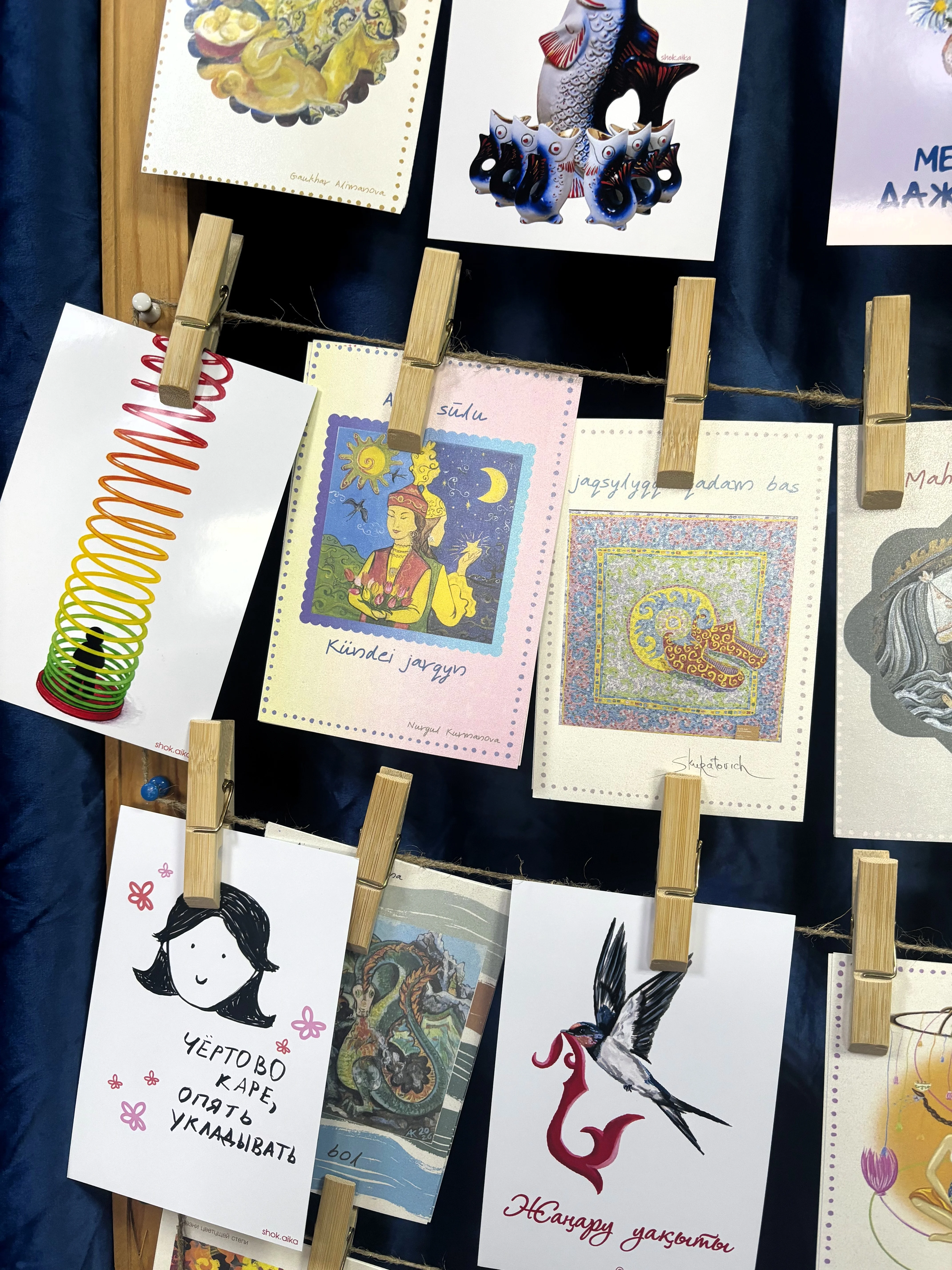- Мы с Айзат организовали выставку. Толчком стала предыдущая выставка «Аныз Дала», где были собраны работы про мифы и легенды казахского народа в формате 30 на 30. Тогда мы решили распечатать их в виде открыток для продажи. А потом подумали: почему бы не соединить выставку с ярмаркой в преддверии праздников? Художники тут же подтянулись. Мы всегда вместе, одно без другого не существует. Получился такой формат: люди и работы посмотрят, и смогут что-то приобрести. Тем более это авторские открытки, а не просто скачанные из интернета или сгенерированные нейросетью.