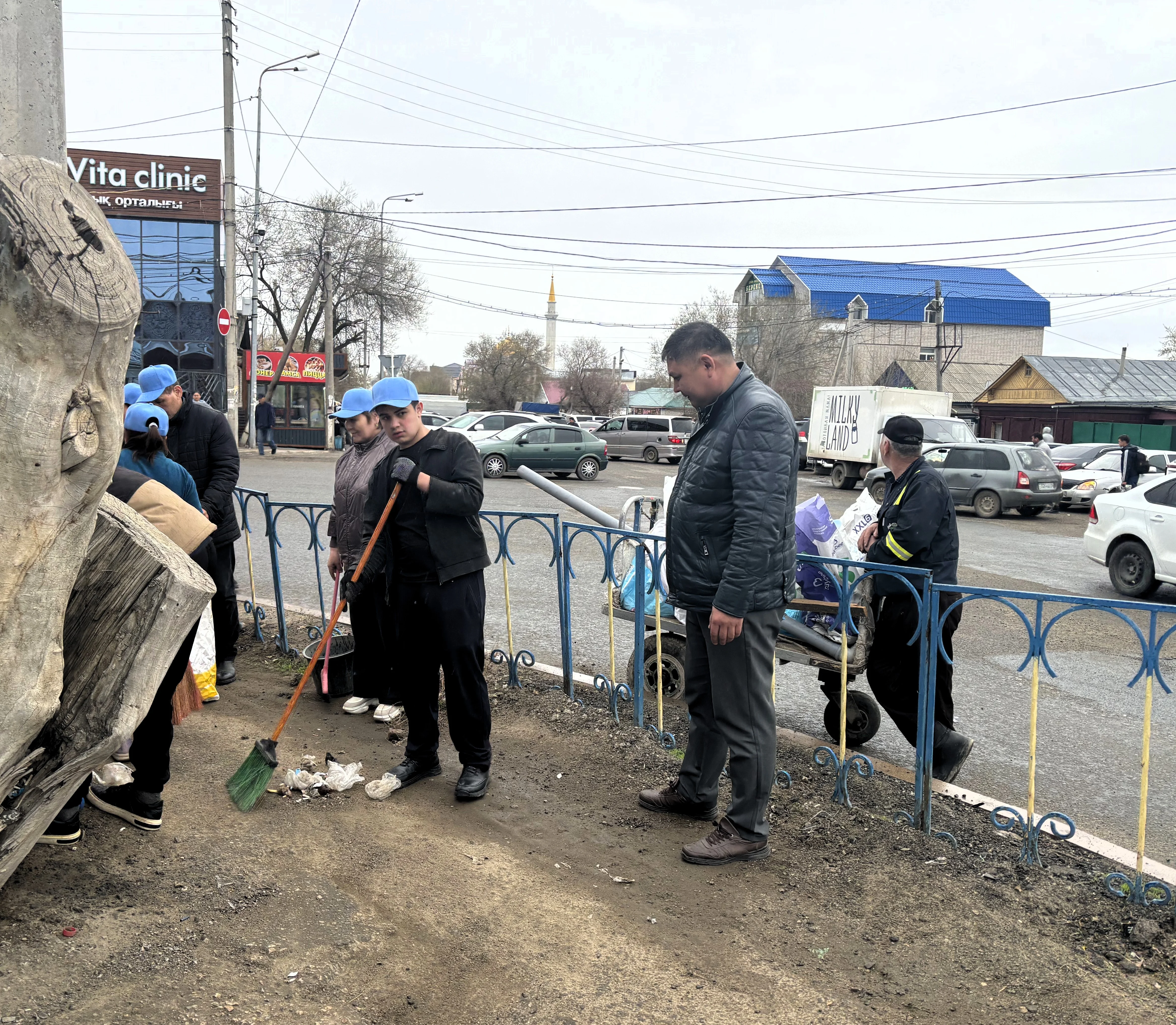 Сама уборка не сводилась только к сбору мусора. Участники белили бордюры, убирали надоевшие объявления со столбов, пололи сорняки, поливали деревья. Старую часть города постепенно приводили в порядок: без лишней торжественности, но с заметным эффектом.